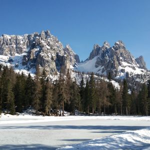 冬のドロミテは雪景色で凄く綺麗でした。