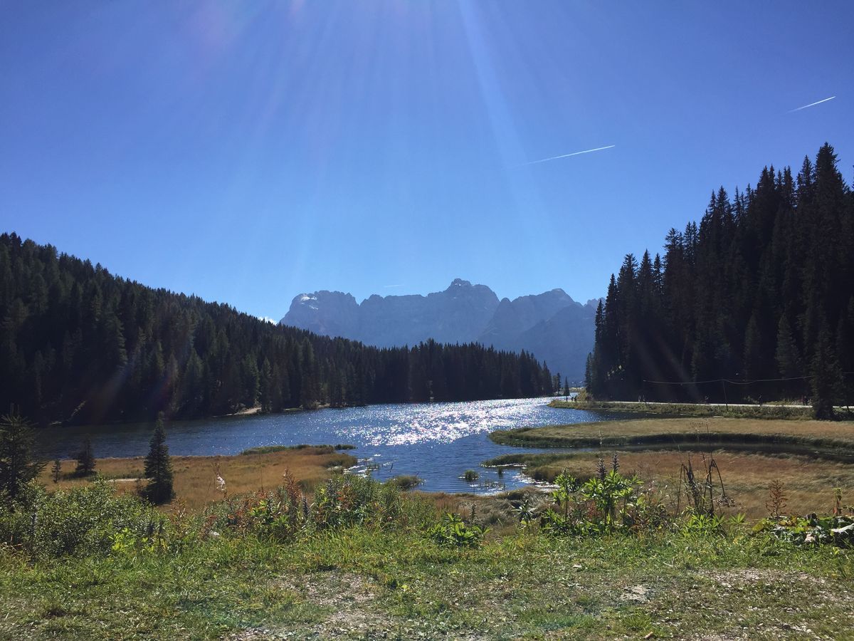 ただ、VERTRAのスケジュールに、「標高2360mの高さからの絶景を堪能しながらのハイキング!トレ・チーメからセストへのハイキングも楽しめます。」と書いてあるが、2300m付近の駐車場に到着後はその周辺で写真を撮ったり景色を楽しむだけだったので、ハイキングを楽しみにしていた私にとってはVERTRAに裏切られたような気持ちは否めなかった。でも、ミズリーナ湖畔で、昼食休憩が1時間15分ほどあったので、急いでサンドイッチとカプチーノをお腹にいれ、湖を一周した。50分ほどあればゆっくり散策できると思う。どこからも山々が見えて素晴らしいコースだった。
