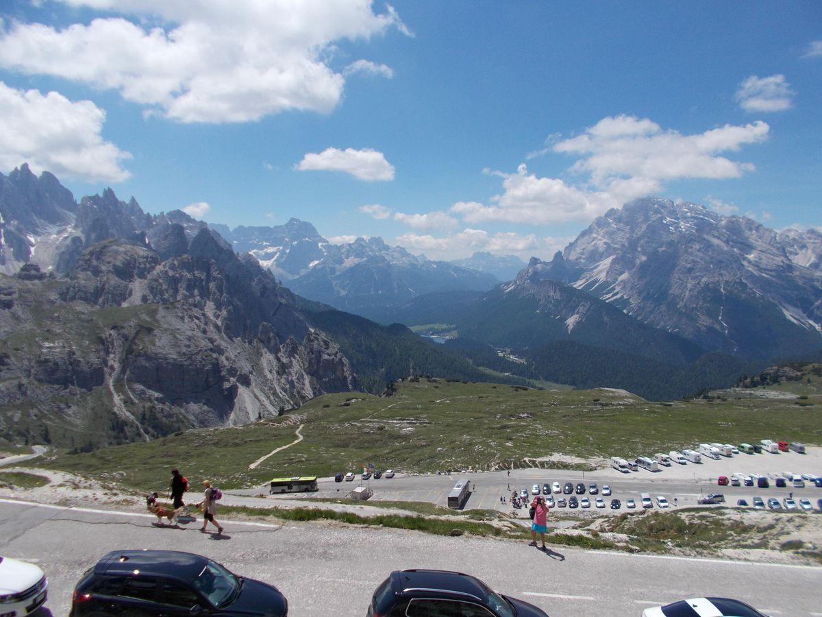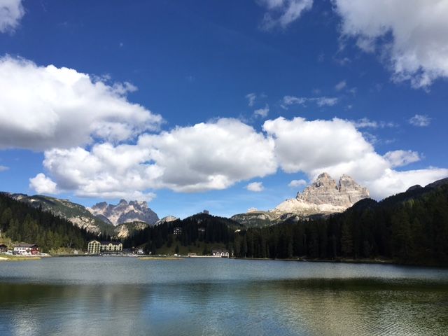私達と夫婦3組の8人でボックス車で出発しました。途中テイッツアーノの故郷で休憩して、ジェラードアイスを食べてミズリーナ湖でランチでした。その間二か所の写真スポットで下車しての説明があり、迫るドロミテを体感できるドライブでした。欲を言えばランチのレストランが混んでいたため50分の自由時間に散策ができなかったのが少し残念でした。夏休みの道路の混雑もあり、時間がいつもよりも取れなかったのだと思います。