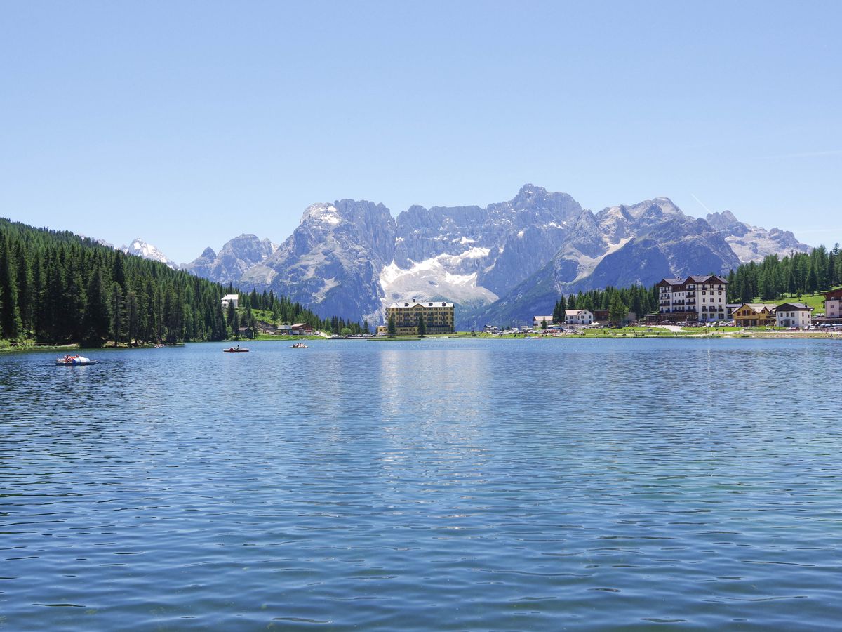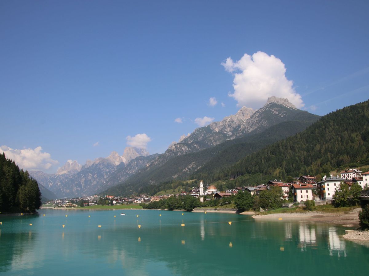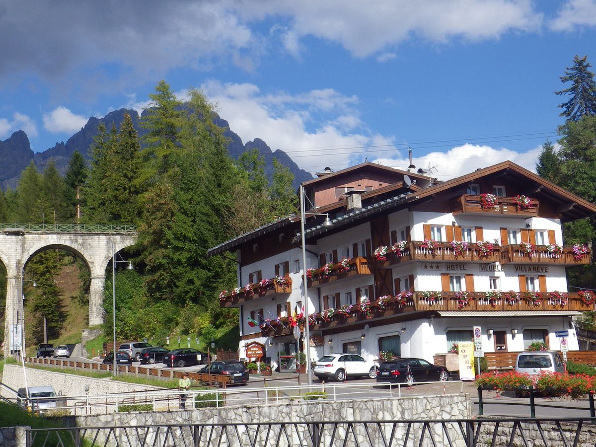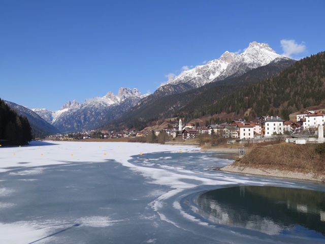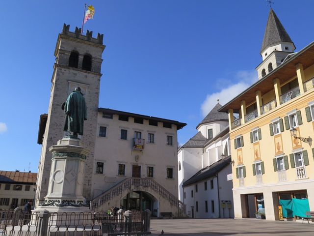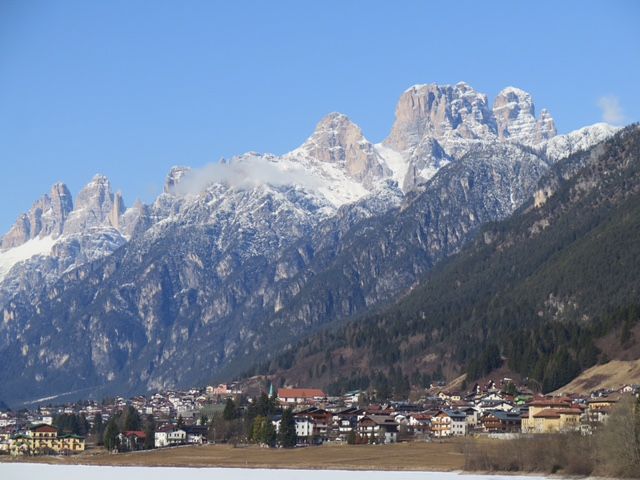 絶景を堪能した後、13時頃に保養地として有名なミズリーナ湖畔で1時間半程度の昼食休憩を取り、その後、再び絶景ポイントに立ち寄りながら山の麓まで移動し、15時頃にオリンピック開催地で登山やウィンタースポーツの拠点となるリゾート地コルティナ・ダンペッツォに到着。ここでも1時間弱の自由行動があった。ベネツィア本島とは異なる雰囲気と、スイスのリゾート地に似た街並みを見て歩いて楽しめた。