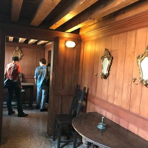 特に面白かったのが、ヴェネツィアの行政官で最高の位にあった人(日本なら財務省と経済産業省の事務次官を合わせたような感じかな?)の執務室です。狭く、飾り気なく、質素でした。天井の高さは大評議会の間の半分ではないでしょうか。大評議会の間にあった窓と同じ高さが2回分に分割されていましたから。
