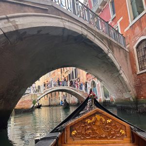 ドゥカーレ宮殿の各部屋の案内→サンマルコ寺院の入場→ゴンドラ乗船の流れもスムーズでした。ゴンドラは面倒な交渉要らずで、20分程度狭い運河やリアルト橋、カナル・グランデもコースに含まれ、十分堪能できます。効率よく楽しめてオススメです。