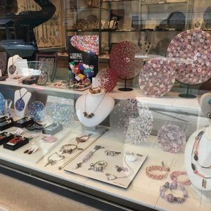 以前の投稿でかなり待たされるとのことでしたが、定刻到着したら既に案内のお姉さんが待っていて声をかけてくれました。うちの家族のみだったようです。こちらは英語も拙い感じでしたが、気遣ってくれたのか色々話しかけてくれました。早歩きでしたがヴァポレット乗り場に10分程度で到着。朝のムラーノ島はとても寒く、意外と島の中も結構歩いて到着。工房内で若いお兄さんと交替。工房でガラス細工の製作を見学。その後再びお姉さんの説明でガラス使用のブレスレット、キーホルダー、モザイクガラスの製作体験(いずれかを選択)。製作後ボンドの圧着を待っている間お兄さんが販売ゾーンに連れて行ってくれました。戸を開けた奥は沢山のシャンデリアやガラスの飾り、食器など。2割引+送料無料サービスでしたがちょっと即決で買うのは難しい値段でした。最初から買いに来ていれば別ですが。それでも押し売られる感じはありませんでした。そこで製作したものをもらって解散。島内散策、博物館に寄って帰りました。