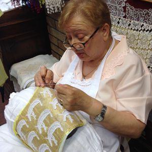 ブラーノ島のレース編み工房の見学は、工房というより普通のお店で、その中に座っているおばぁちゃんがレースを編んでいるの3分くらい見て終了でした。