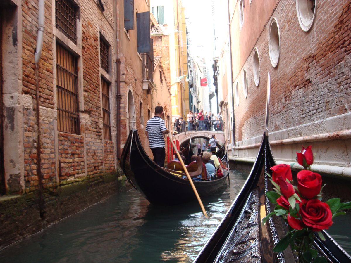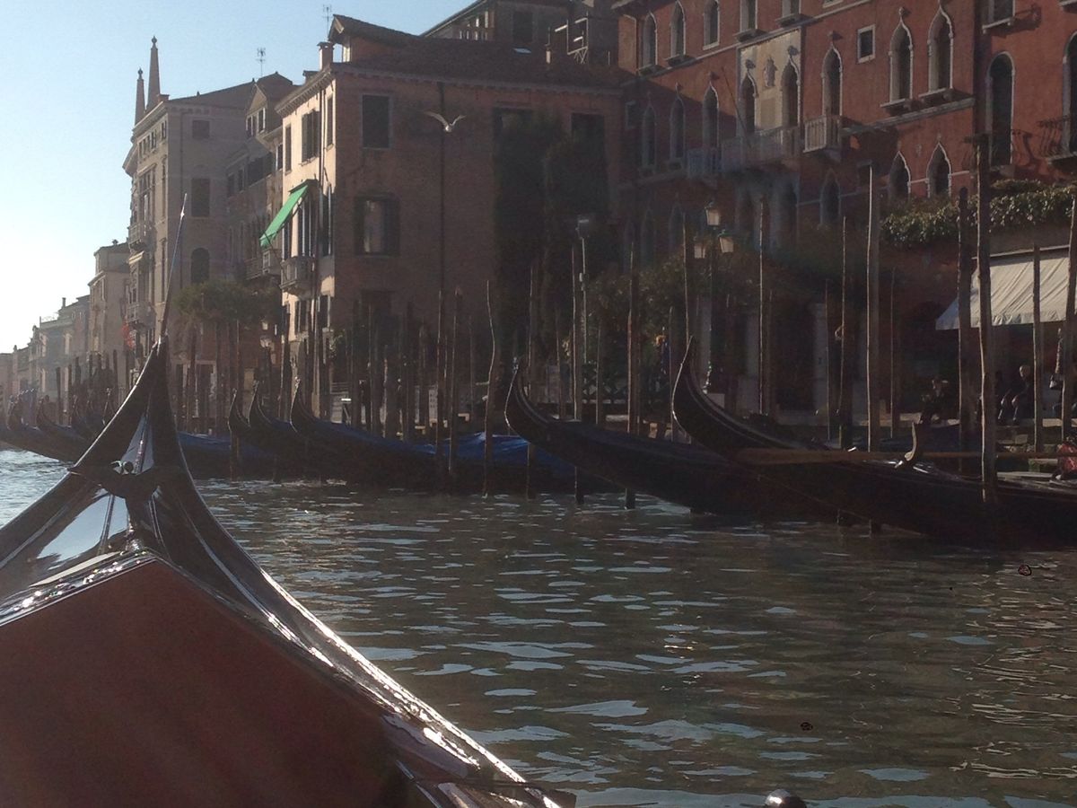 町中ではゴンドラの勧誘はあるし、物乞いもいるし、トイレでジプシーも騙されたりと、気を抜くヒマがありませんが、ゴンドラに乗ると細い水路を通って街の裏側が見られるし、思いのほか静かで、建物の間から覘く細い青空がとても良かったです。