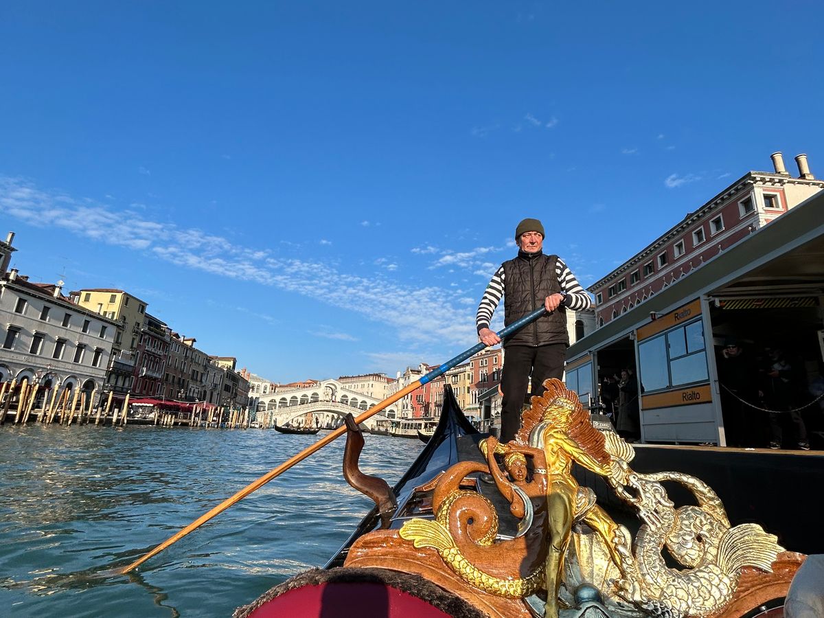 ゴンドラは観光用のちゃちな乗り物と思っていましたが、気品のある事を発見しました。高度な操縦技術、船は黒塗りで、各船に異なる金銀の造形物が設置されており、魅力があります。素晴らしい体験でした。終了後のおまけのARが望外に良かったです。
