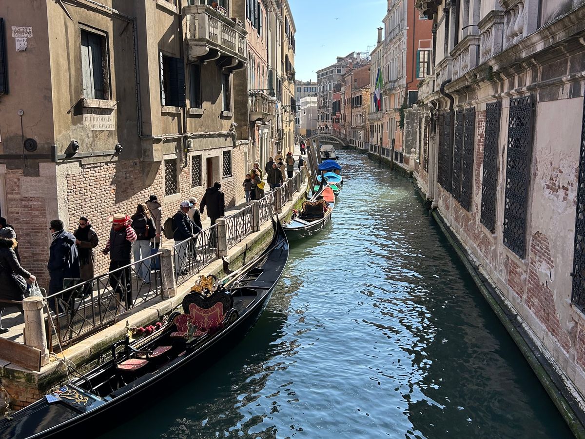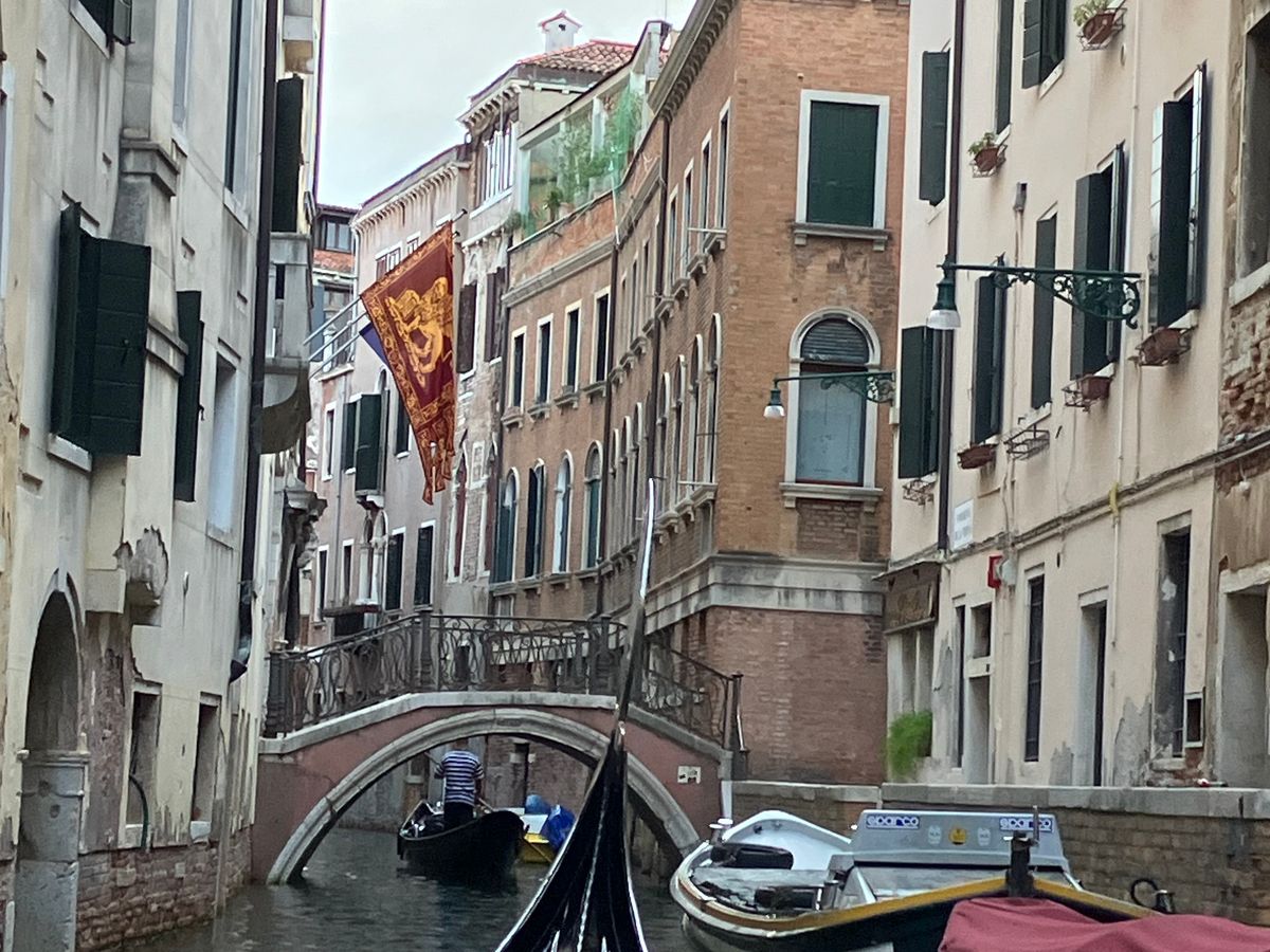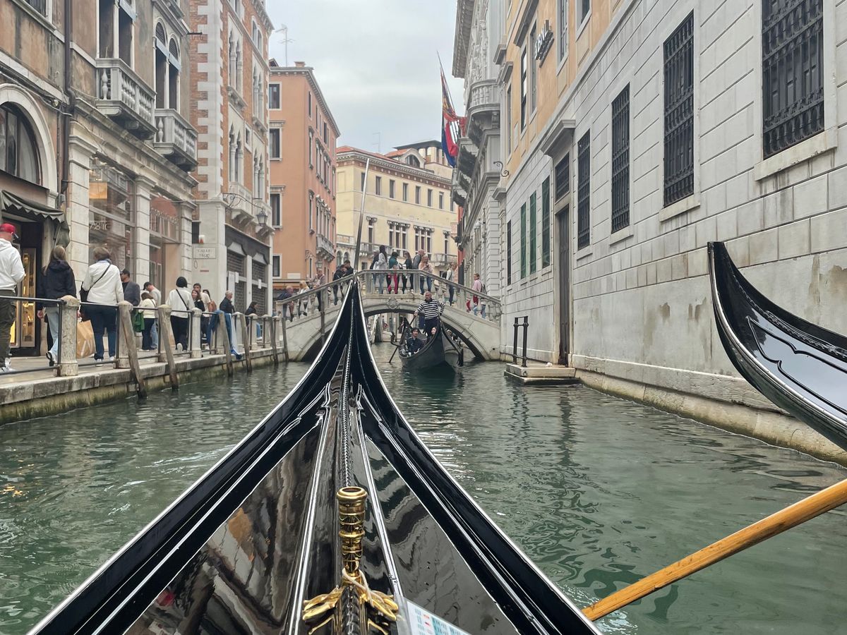 ガイドさんの丁寧な説明でドゥッカーレ宮殿を堪能しました。ベネチアの栄華を堪能した後は、ゴンドラ遊覧。ゴンドラはあまり期待していませんでしたが、乗ったら風が気持ちよく、歩きでは見れない運河の景色、最高に気持ちの良い時間でした。ゴンドラは水を走る馬車と知りました。