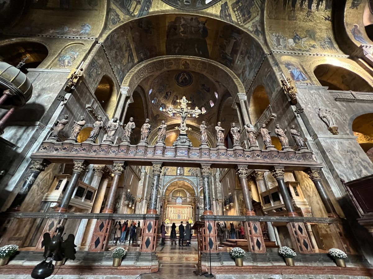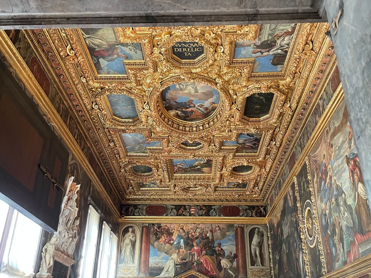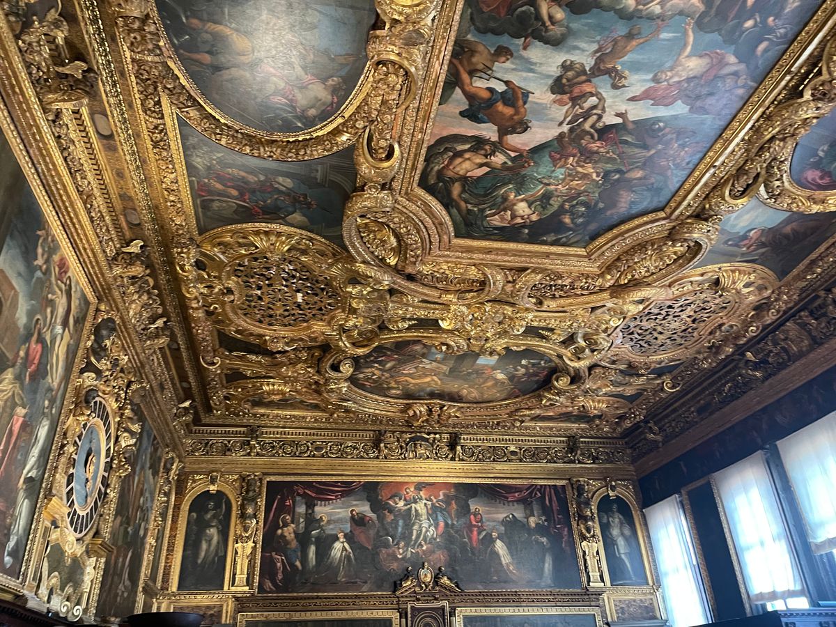 宮殿の大広間は圧巻でした。あれが吊り天井であることや、裁判所の裏道など、テキパキ説明していただき、追いつくのが大変なくらいの情報量でしたが、とても興味深かったです。サンマルコが天気のせい?か暗くて、もっと明るい時に観たかったです。荘厳でした。