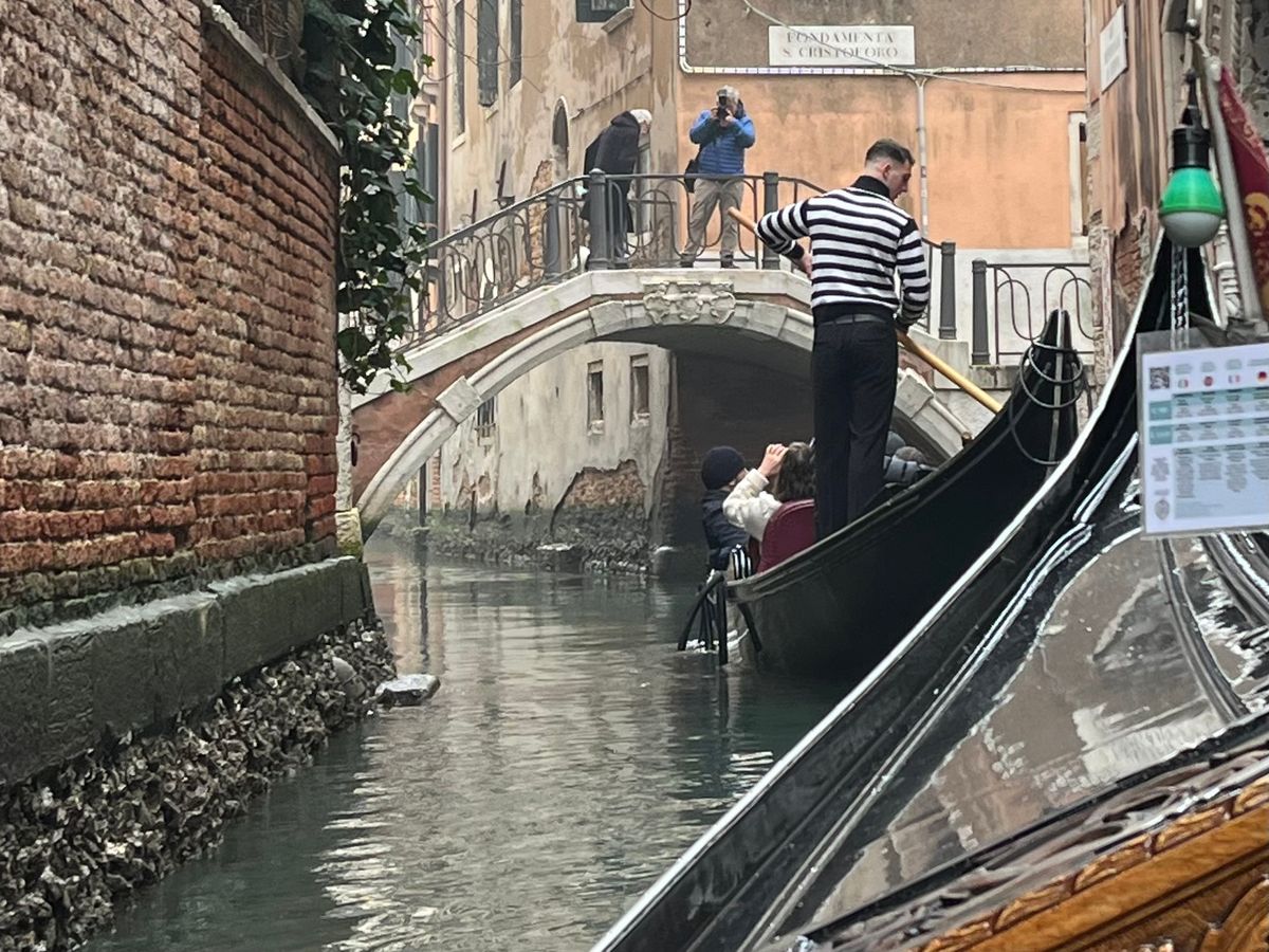 腕にタトゥーだらけのゴンドリエーレの男性は、最初からスマホをいじりっぱなしで、途中から大声で通話を始め、雰囲気も何もありませんでした。降りるときまでずっと通話。あきれました。