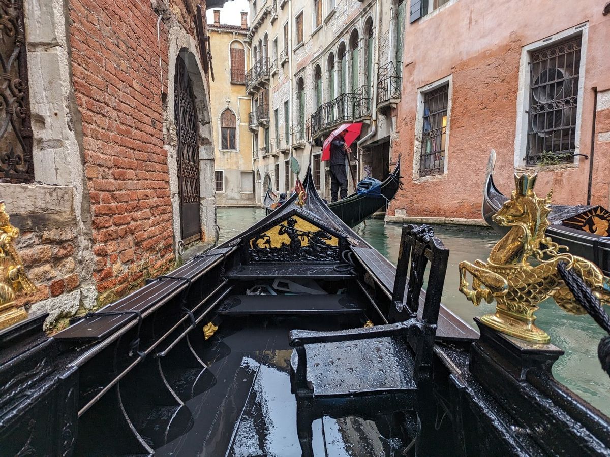 ゴンドラ遊覧については当日のタイミングでうまく乗り合わせればツアーに参加しない形もあるかと思っていたのですが、セレナーデ生演奏に惹かれて申し込みました。当日は日本人の新婚さんお二人との3人参加だったため、大変アットホームな雰囲気で良かったのですが、あいにく雨が本降りとなってしまい、傘をさしながらの悪条件となってしまいました。それだけが残念です。ベネチアには3日間滞在しましたが、ゴンドラも楽しめるものの、水上バスの1日パスとか2日パスを使って乗りまくるのがベネチアの魅力を味わうのには最適ではないかと思っています。ゴンドラから望む風景よりも、水上バスから眺める様々な時代の建物が織りなす風景は唯一無二ではないでしょうか。