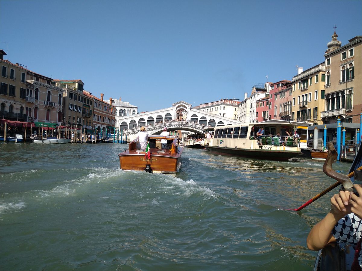 ドゥカーレ宮殿の各部屋の案内→サンマルコ寺院の入場→ゴンドラ乗船の流れもスムーズでした。ゴンドラは面倒な交渉要らずで、20分程度狭い運河やリアルト橋、カナル・グランデもコースに含まれ、十分堪能できます。効率よく楽しめてオススメです。