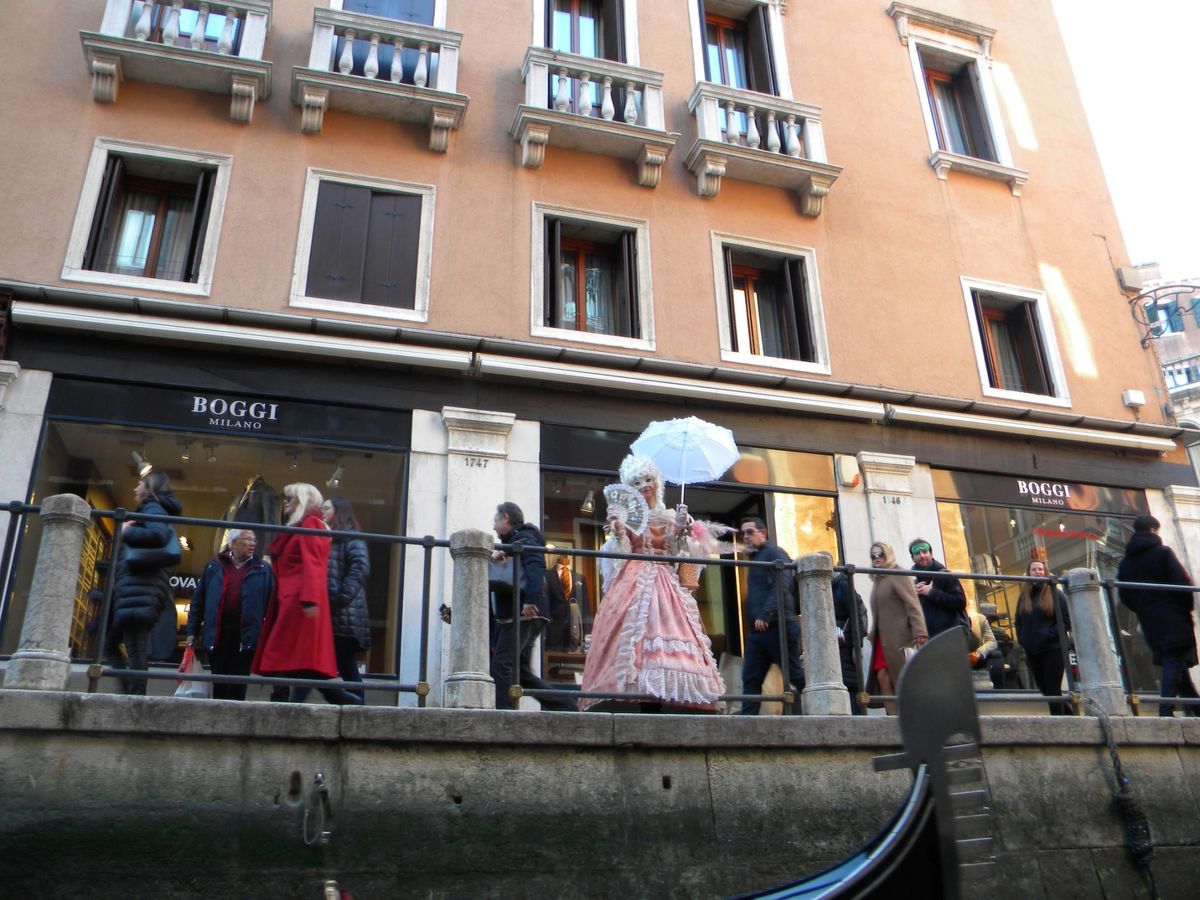 ゴンドラもカーニバル中だったので心配だったからでしたがたっぷり20分ちょっと、狭い水道から大きな運河へ、ぐるっとまわってくれて十分に楽しめました。カーニバルでは、朝早起きして、人がいなくて空いているヴェネツィアを歩いて楽しみ、混んできたらツアーを頼む感じで楽しみました。このオプショナルツアーはおすすめです。