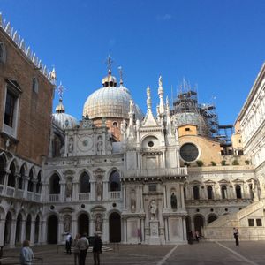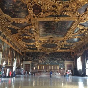 同じカトリックであってもローマなどで観た教会とは違い、豪掛値欄な宮殿と寺院に驚きました。日本のテレビでドッカーレ宮殿の特集を観た記憶があり、隣接する牢獄の間にある溜息橋を渡れたのは不思議な気分でした。この日は4組9人の参加でガイドの方の声が聞こえないことが多く(子供がいたので特に・・・)音声ガイドが欲しいと思いました。