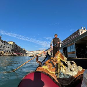 ゴンドラは観光用のちゃちな乗り物と思っていましたが、気品のある事を発見しました。高度な操縦技術、船は黒塗りで、各船に異なる金銀の造形物が設置されており、魅力があります。素晴らしい体験でした。終了後のおまけのARが望外に良かったです。