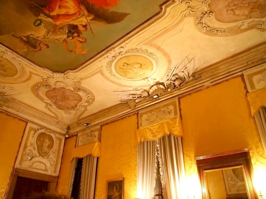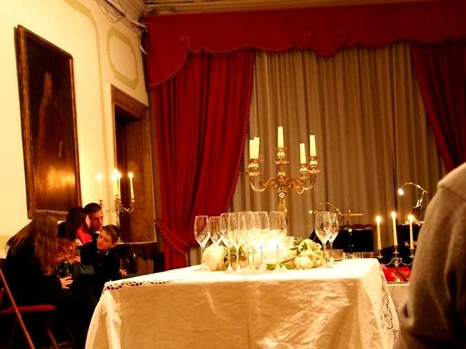 場所の検索をするとカナル・グランデ沿いに入り口があり、心配だったので明るい時間に、「Musica a Palazzo」の下見をしました。と言ってもわかりにくかったのですが、会場の時間間際になったら、案内の張り紙が出ていたので、助かりました。ドレスコードはカジュアルでしたが、中にはフォーマルのドイツ人のおばさまがたもいらっしゃいました。(浮いてましたが。。。)受付を済ませ、中に入ります。その日は「椿姫」のオペラを見ました。観客は場面ごとにお部屋の移動をし、雰囲気を味わうことができます。ほぼ満席でしたが、自由席なので好きなところに座れました。オペラは、観客とステージが一体化なので、目と鼻の距離でアリアを楽しむことができます。一流のオペラファンでしたら、違った良さに気がつかれると思います。