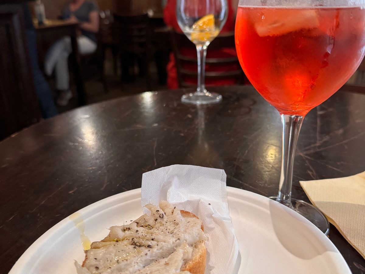 オンブラ(グラスワイン)片手にチケッティ(つまみ料理)を堪能。各バカロにはそれぞれ自家製のチケッティがあって、ツアーガイドさんに説明してもらったり、オーダーしてもらったりして、自分1人で行くよりも楽しめました。