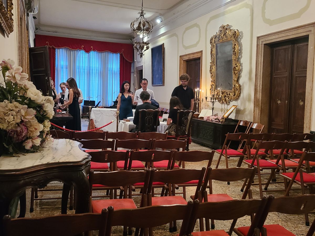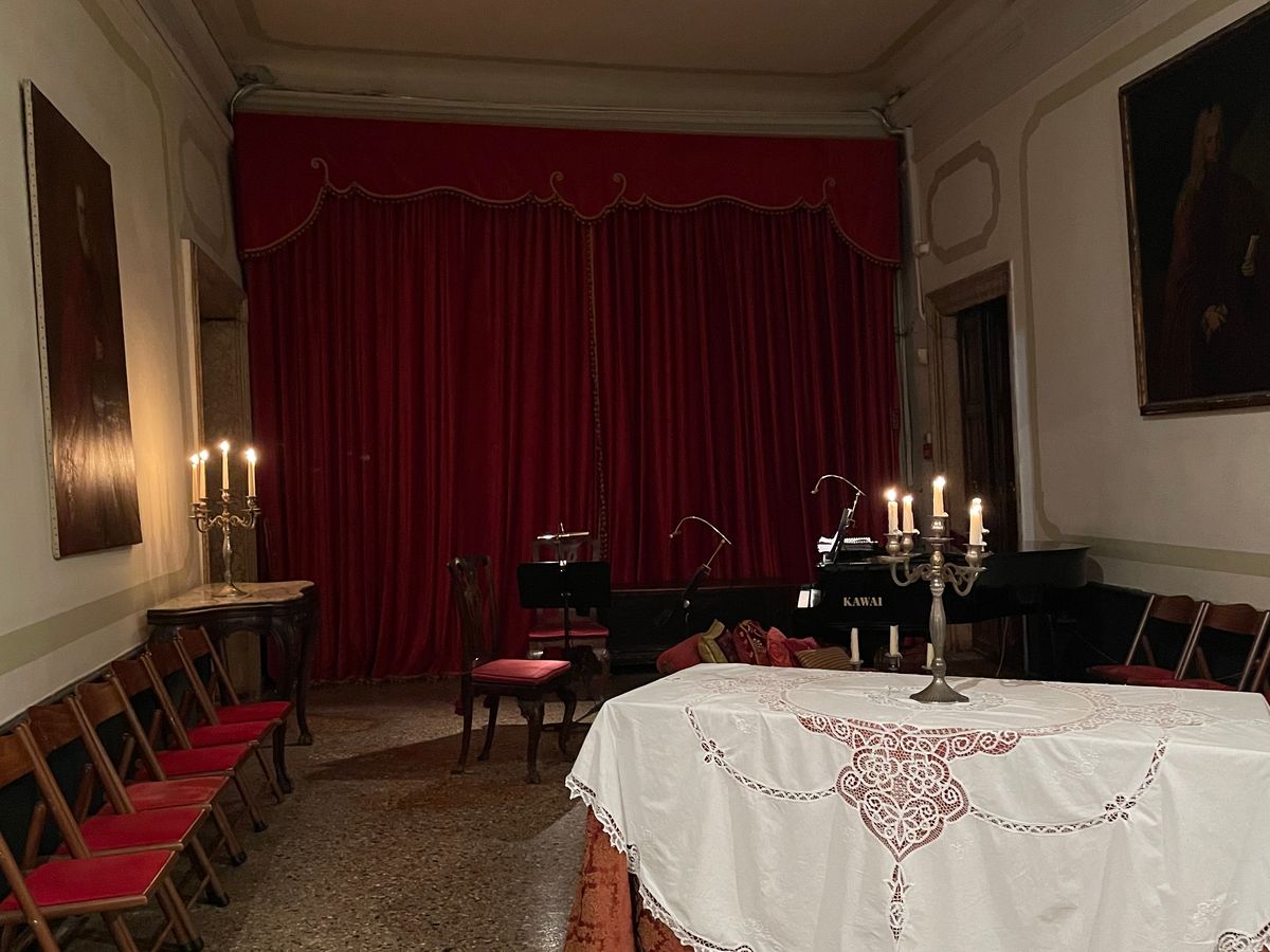 現地の場所が分かりづらく、午前中に下見に行きました。椿姫の内容は予習してたので完璧でしたが、2時間で終了させること、4人の演者で行うため、少し簡略化した内容でした。主役の2人は歌と表現力が素晴らしく感銘しました。音はピアノとバイオリンなので迫力には欠けますが間近で聴けるのでそれはそれで良かったです。そもそもOperaの始まりはこんな感じだったのかなと考えさせられました。終わるのが22時過ぎで公共の乗り物はなく、船のタクシーを乗る覚悟でしたがベネチアは治安が悪くなく、皆さま、ホテルまで夜道をダラダラ歩いて帰ってました。夏でしたが夜は暑くなく月の夜道を余韻に浸り楽しく歩いて帰りました