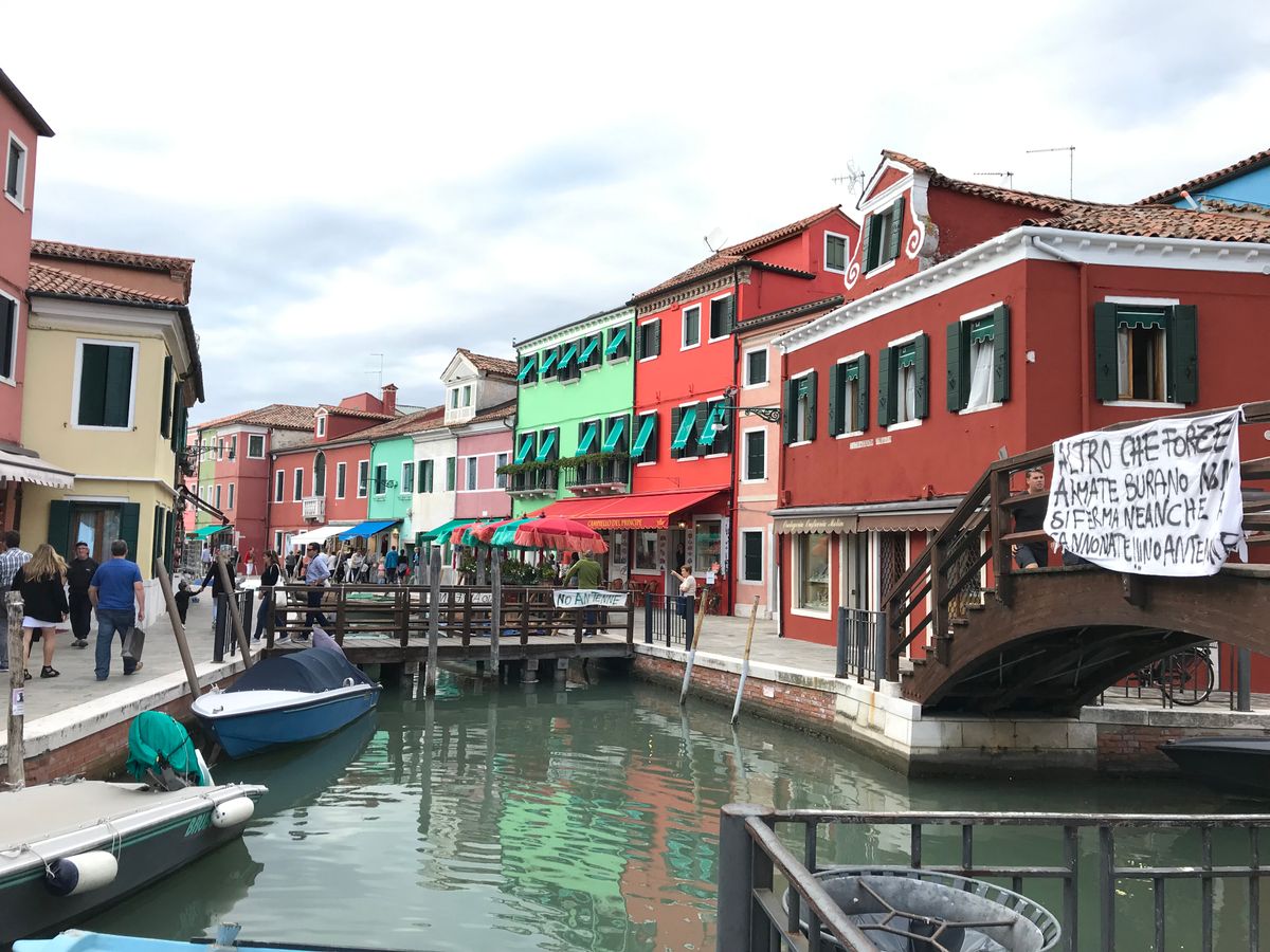 ブラーノ島でカラフルな建物、お菓子屋さんとレースのお店を見学して自由行動でした、この自由時間はとても良かったです。あまり移動時に人数確認をしないのではぐれないように注意が必要です、はじめてのムラーノ島には良いのではないでしょうか、