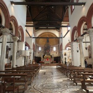 ムラーノ島に着くとすぐにサンティ・マリア・エ・ドナート教会へ。教会の中まで見学できました。ガラスがとても綺麗でした。