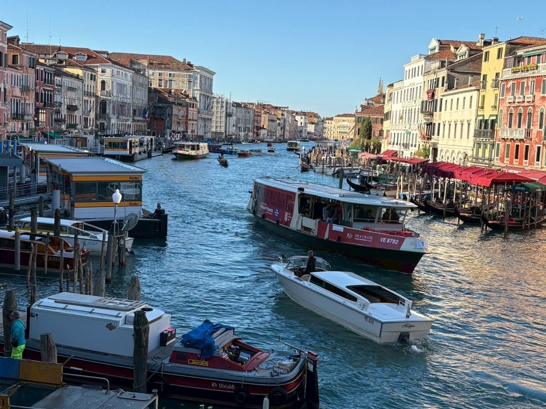 サンマルコ広場の人混みから徒歩で集合場所のザッカリア広場にある事務所へ移動しチェックイン手続きをしてシールをもらう。係員が来るまでだいぶ待たされる。その後ホテルダニエリ前の乗り場へ行き4-5人ずつに分かれ乗船。大運河を揺れながら進み、ため息橋の見える狭い運河へ入る。いくつもの橋をくぐり25分はあっという間に過ぎた。運河から見るベネチアの風景は地上から眺める風景とはまた一味違ったもので、貴重な体験となった。