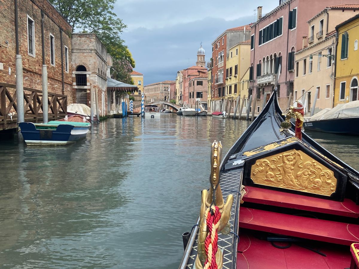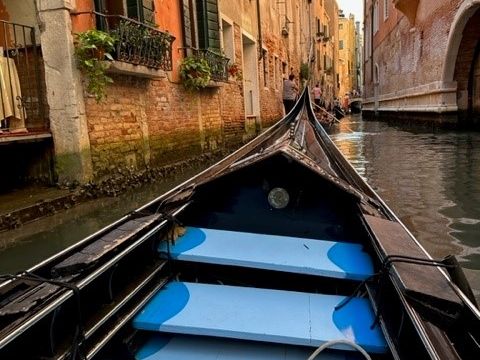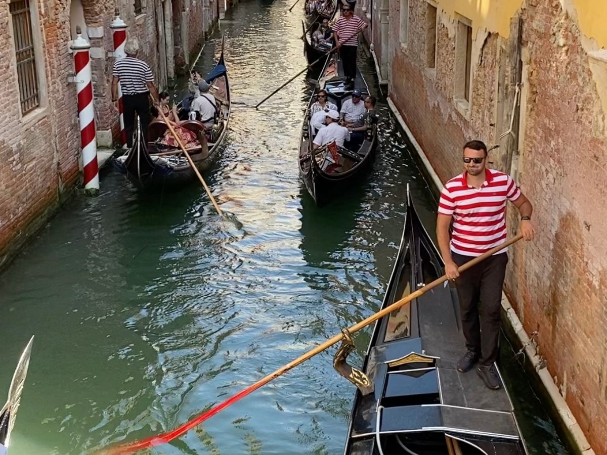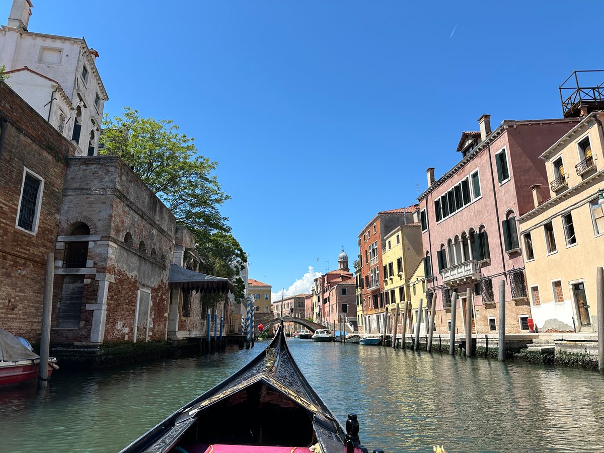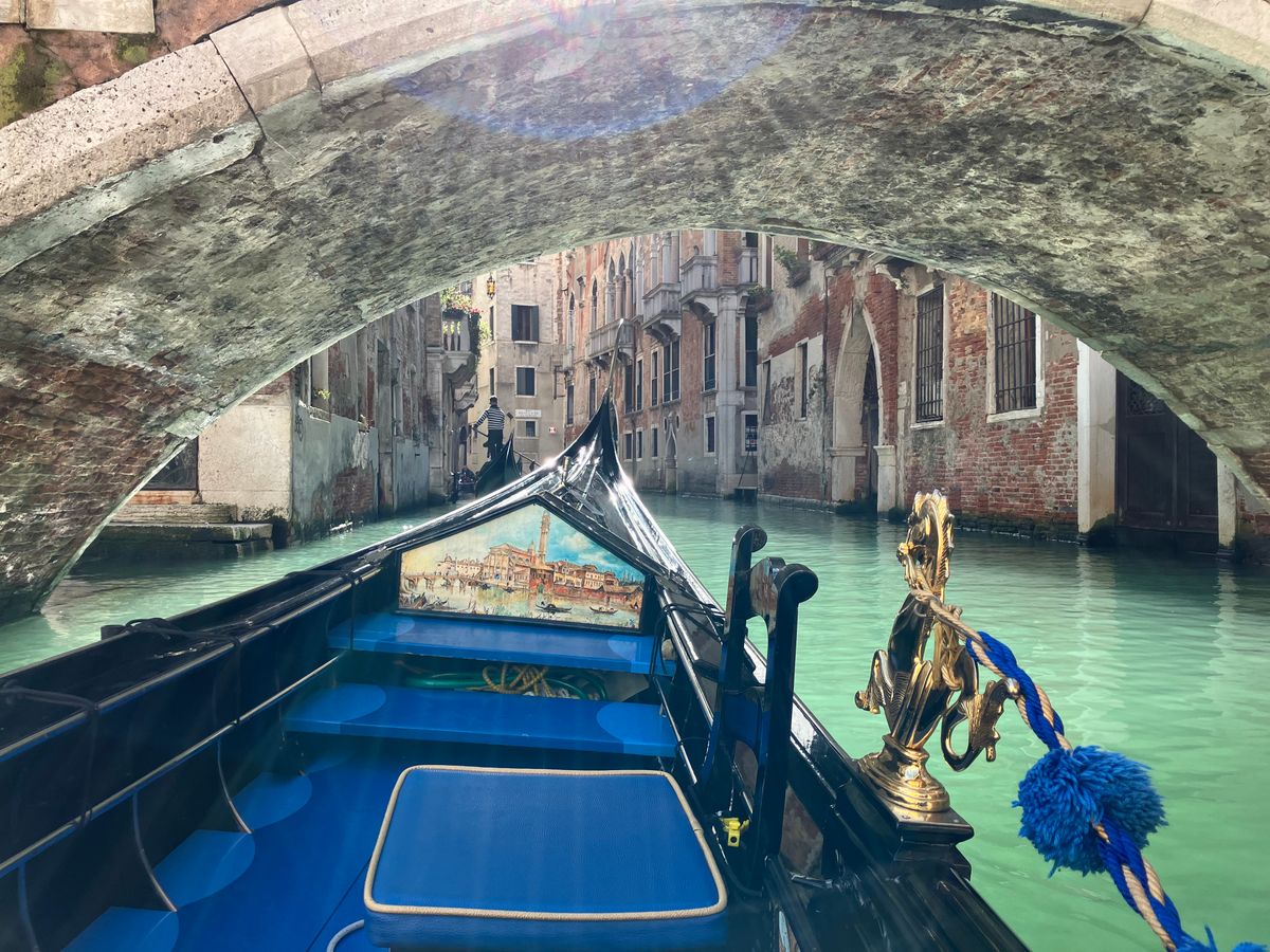 真夏の暑さと人混みを回避したかったので、早朝にヴェネツィアの街並みを散策し、10:30〜のゴンドラ遊覧に夫婦で参加させていただきました。貸切でしたので静かにゆったりと楽しむことができました。