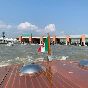 フランス人老夫婦3組とご一緒でしたが1組のフライトが遅れ30分ほど待つ羽目になりました。日本からの便は夜遅くに到着する便がほとんどなので、近くのホテルに一泊しようかと思いましたが同僚の勧めで移動することにして正解です。ナイトクルーズを楽しめベニスの夜を満喫できました。向かい岸にはギュウギュウ詰めのバポレットをしり目にこちらはゆったりと豪華クルーズ。受付が空港の出国カウンターからかなり遠く途中にある窓口で尋ねてようやく発見しました。飲食店など何もないので迷いようがなくまっすぐ奥へ突き進んでいけば発見できるのでさほど問題ではないかと思います。夏でも風を切って海上を走るのでウルトラライトダウン着用でちょうどよかったです。他の乗客は「我々はチップを払うからあなたもね、5ユーロよ」とフランス語なのでたぶんですがそう言われたので払いましたが、ドライバーの兄ちゃんは喜ぶでもなくそっけない態度。既に料金に含まれてるだろうからいらなかったかもと思います。