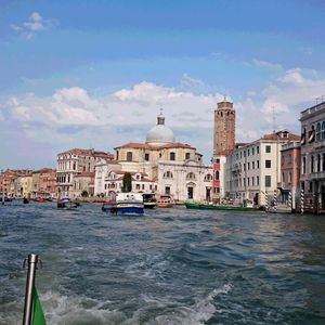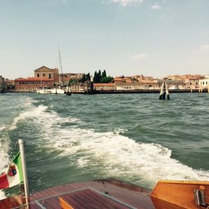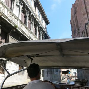 当日は、出発時間の10分前には船が到着し、近くにいた船乗りのお兄ちゃんが笑顔で荷物を運んでくれて、とても心地よい出発となりました。船はとてもきれいで乗り心地がよく、街の中を通りながら飛行場に向かいました。私はヴェニスでゴンドラに乗らなかったのですが、細い水路を通ることができたので、気分を味わうことが出来ました。