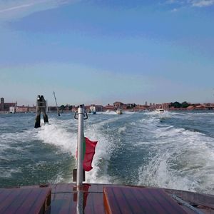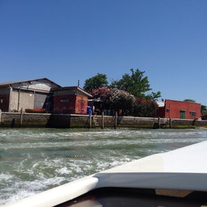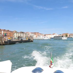 待ち合わせの場所の地図は正確でしたが、指示されたボート乗り場の名称はどこにも表示がなく、若干不親切でした。船着き場には特に係員がいる訳でもなく乗客の情報を把握しているのは、ボートの船長だけのようでした。幸いにも同じボートの予約をもったカップルがいたので若干安心しました。空港への航路はベネチア市内の運河を抜けると一直線で快適な船旅でした。ただし雨が降っていると若干つらいかもしれません。
