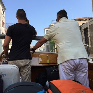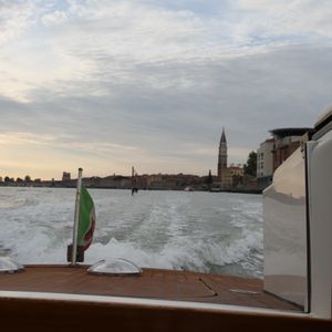 8月のお盆期間を利用しての、初めてのベネチア旅行でした。イタリア語が全くわからない私達親子。英語が通じるスタッフさんで、とても親切で助かりました。一隻の水上タクシーに、外国人さん達と乗り合わせて、合計7名でした。船内も新しく綺麗で快適。ただ、Webで集合場所を確認したかったのですが、リンクで辿れなかった(ツアー紹介のページしか表示されません)為、合流するまではとても心配でした。宿泊先ホテルに届いたFAXでもわかりづらかったです。待ち合わせ場所には看板も何も付いていないので、事前に足を運んで確認をしておくことをオススメします。私達はロンドラパレスの前のピックアップ場所から30分程でマルコポーロ空港の船着場へ。天気も良かったのでスーツケースを転がしながらでも10分位で空港内に入れました。このお値段でこの早さと親切なスタッフさんなので、頼んで大正解でした。