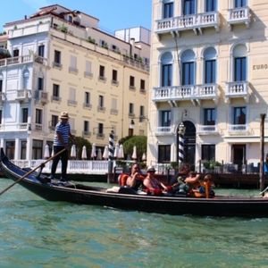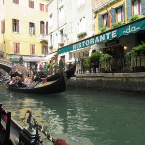 ヴェニスと言えばゴンドラ。少し奮発して貸し切りを予約しました。のんびりと運河側から見るヴェニスの街並みは格別でした。事前に渡されたコースより短かったのは減点。