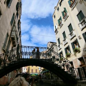 開けた運河から細い水路に入っていくと、とても近くにヴェネチアの家が立ち並んでいました。日本で日常的に見かける電柱・電線などがないせいか、ゴンドラに座った位置から家を見上げると、物語の空間に迷い込んだような景色になり、非日常を全身で感じることができました。