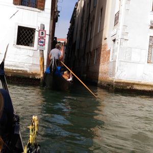さらに、狭い水路に入っていくほど、ゴンドリエーレの技が秀逸であることを実感しました。建てられている家々の角にぶつかってしまいそうなほど細い細い水路でも、ゴンドリエーレは一人でゴンドラを操作しており、お客さんの後ろから静かにその繊細な技を発揮していて驚きました。