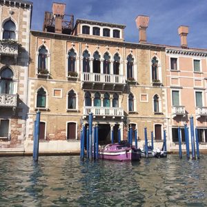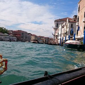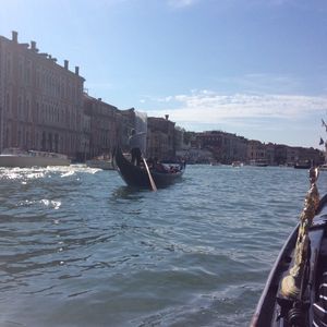 イタリア旅行のベネチアでゴンドラを予約して乗りました☆カナルグランデ運河が広がる海でヴァポレットをサンマルコまで乗り軽いクルージング気分で乗った後に乗りましたが、ヴァポレットとはまた違った乗り方が体験できて、運河も間近に見れて良かったです☆
