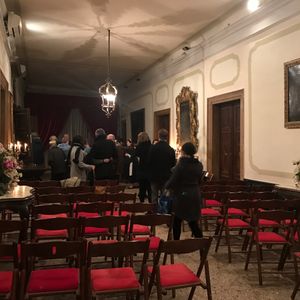 フェニーチェ劇場の上演がない日だったので、このツアーに参加しました。椿姫の演目でしたが、ソプラノ1名、テノール2名、ピアノ・ヴァイオリン・ヴィオラ・チェロ各1名の構成でした。