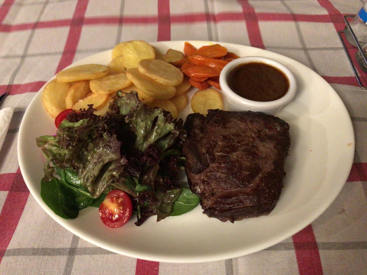メインの赤身のステーキ肉、とってもおいしかったです♪