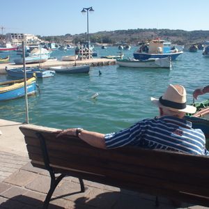 マルサシュロックは、思っていたほど漁村ぼくなく、リゾート地かマリーナのイメージでした。市場も魚介類は少なく、夜市の露店に近い感じ(午前中ですが)。スイカやメロンを安く売っていたし、ジェラートが美味しかった。係留している船はカラフルでした。