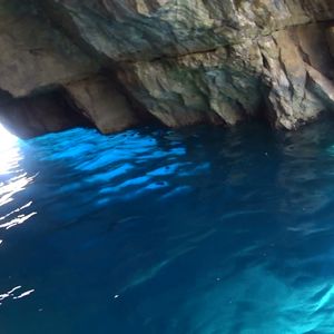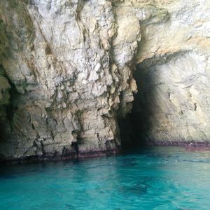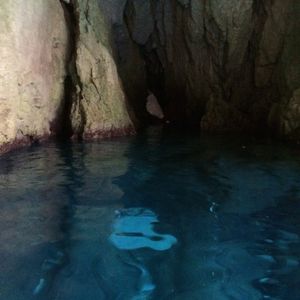 青の洞門へのボート乗場は長い列でしたが、すぐに順番が来ました。ゾウの形の岩や、深い岩場をいくつか回り、透き通る神秘的な海の色、海底の輝きに魅了されました。が、結構波が大きくて、軽い船酔いをしました。酔いやすい人は、事前に酔い止めを飲んだ方がいいかも。