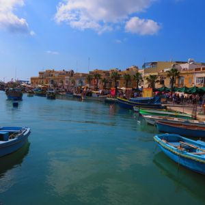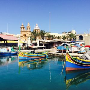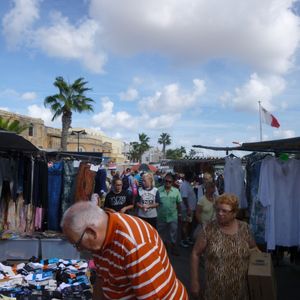 強風のため運行しておらずこれは残念だったが 海と空の青さを満喫。 海辺の町、マルサシュロックは自由時間多く 日曜市の端までいけた。 午前の部だったので海産物の食堂はまだ