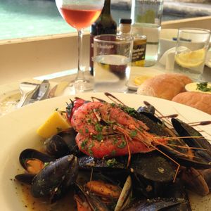 海辺のリゾートのレストラン「THE BOAT HOUSE」でランチタイム。テラス席のすぐ横が海で、パンを投げ入れると大量の魚(ボラ?)がパンに群がってきます。面白くて何度もやってしまいました。新鮮で美味しいシーフード料理とキリッと冷えたロゼワインで、贅沢なランチを楽しみました。最高!!