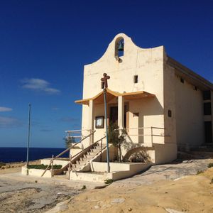 ゴゾ島観光のハイライト。荒波で岩が侵食されて絶景を造り出しています。今も侵食が続き、あと50年以内に確実にアーチ部分が落ちてしまうそうなので、早めに行っておいたほうがいいかも。すぐ横にマルタで一番有名なダビングスポットのブルーホール(岩に囲まれた透明度抜群の海の中の洞窟)があり、たくさんのダイバーがいました。マルタでダイビングなんて、実に贅沢です。駐車場からアズールウィンドウまで徒歩5分程度ですが、その間にある教会が実に良い雰囲気です。