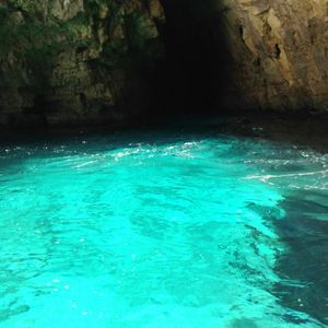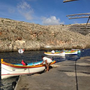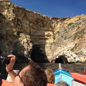 マルタ島で最も楽しみにしていた観光です。ボートは人が集まれば随時出発するシステムで、3分程の待ち時間で出発となりました。地中海に断崖絶壁が迫る中をボートでクルージングしながら、8つの洞門を巡ります。洞門によって海が深い青色や明るいエメラルドグリーンなどに見え、本当にキレイです!またマルタ島の海の透明度は半端なく、プールのように澄んだ海の下には、美しいサンゴ礁が広がります。ここが空港からわずか10分の場所とは思えません。以前に行ったイタリアの青の洞窟は、ローマからナポリへバスで3時間、ナポリから高速船で1時間でカプリ島へ移動、そこでボートに乗り換え、更に洞窟の前で手漕ぎボートに乗り換える必要がありました。待ち時間も相当長かったため、それと比べると、マルタの青の洞門は相当お手軽に行くことができます。マルタ島に来たら、絶対に行ってください!
