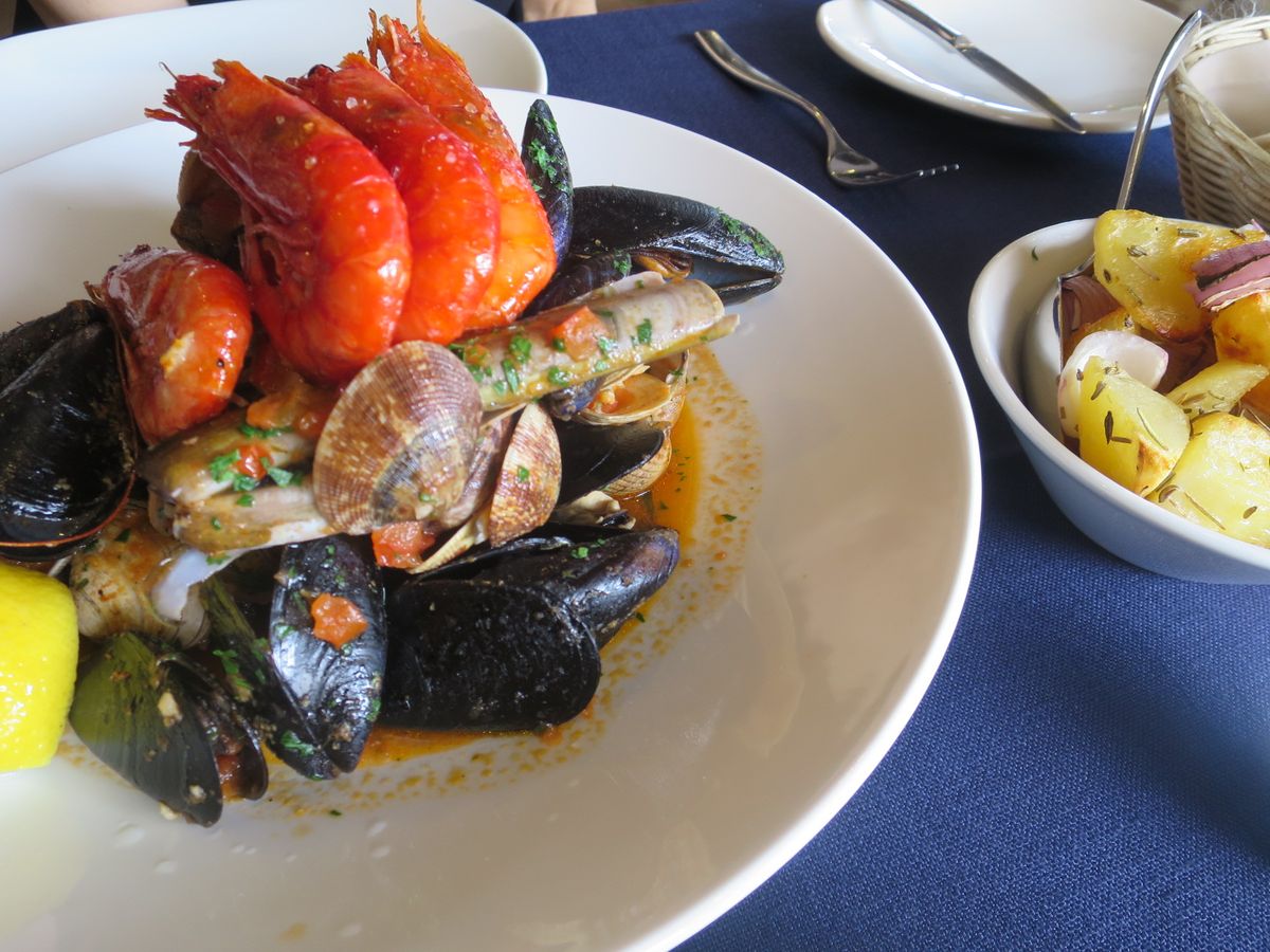 お昼のレストランも魚介系のおいしい料理を味わうことができました。量は多いですが、せっかくなので別料金で他のお料理も頼んだりしながら食べていると、あっという間にお店はお客さんでいっぱいになっていました。人気のお店のようですね。