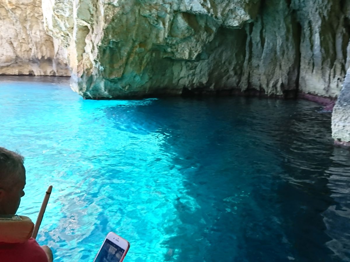 Blue grottoでは多少波がありましたが、ボートが出ていて念願の「碧」を堪能出来ました。ボートでは陽気なガイドさんの近くに座ったため、ガイドさんに色々教えて貰え、楽しい時間を過ごせました。ただ、昼食をとるには残り時間が中途半端だったの事が少しだけ残念でした。