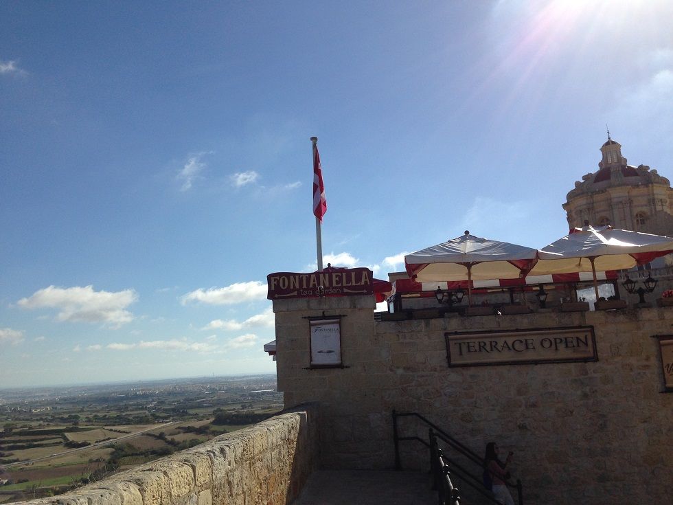 昼食はイムディーナの城壁近くのイタリアンレストランだった。眼下に町が見下ろせ眺望は抜群。ただし料理、雰囲気は今一つ。料金は高いものの我々老夫婦には十分価値があった。