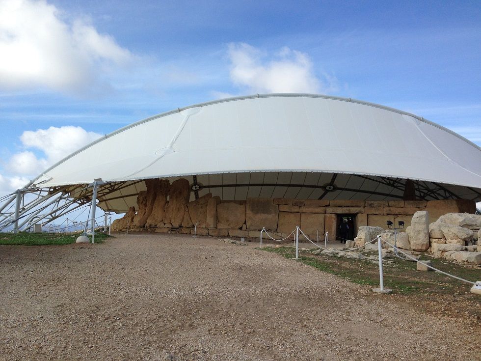 ユネスコ世界遺産に登録されているマルタの6つの巨石神殿の1つで、地中海を見下ろす高台に建っています。風化を防ぐためにドームで覆われていますが、5000年前以上前の文明社会を想像するに十分な保存状態です。最も神聖な場所に、夏至の日に太陽の光が届くように設計されており、5000年前の人が既に天文学を熟知していたということ。また一番大きな巨石は20トン!で、どうやってこの丘の上にどこから運んできたのやら...。とにかく不思議で溢れてます。ちょうど日本のテレビ局が撮影に来ており、BSフジの『すばらしき世界の絶景』という番組で、来年1月に2時間のマルタ特集が組まれるとのことです。今から楽しみです。