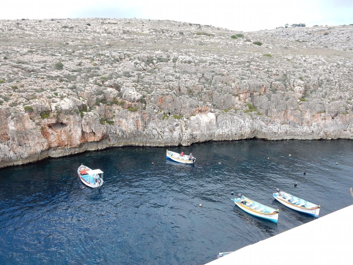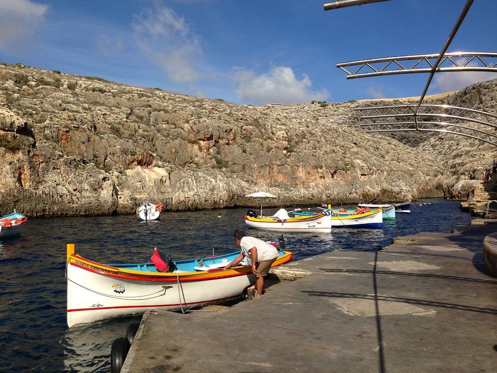 マルタ島で最も楽しみにしていた観光です。ボートは人が集まれば随時出発するシステムで、3分程の待ち時間で出発となりました。地中海に断崖絶壁が迫る中をボートでクルージングしながら、8つの洞門を巡ります。洞門によって海が深い青色や明るいエメラルドグリーンなどに見え、本当にキレイです!またマルタ島の海の透明度は半端なく、プールのように澄んだ海の下には、美しいサンゴ礁が広がります。ここが空港からわずか10分の場所とは思えません。以前に行ったイタリアの青の洞窟は、ローマからナポリへバスで3時間、ナポリから高速船で1時間でカプリ島へ移動、そこでボートに乗り換え、更に洞窟の前で手漕ぎボートに乗り換える必要がありました。待ち時間も相当長かったため、それと比べると、マルタの青の洞門は相当お手軽に行くことができます。マルタ島に来たら、絶対に行ってください!