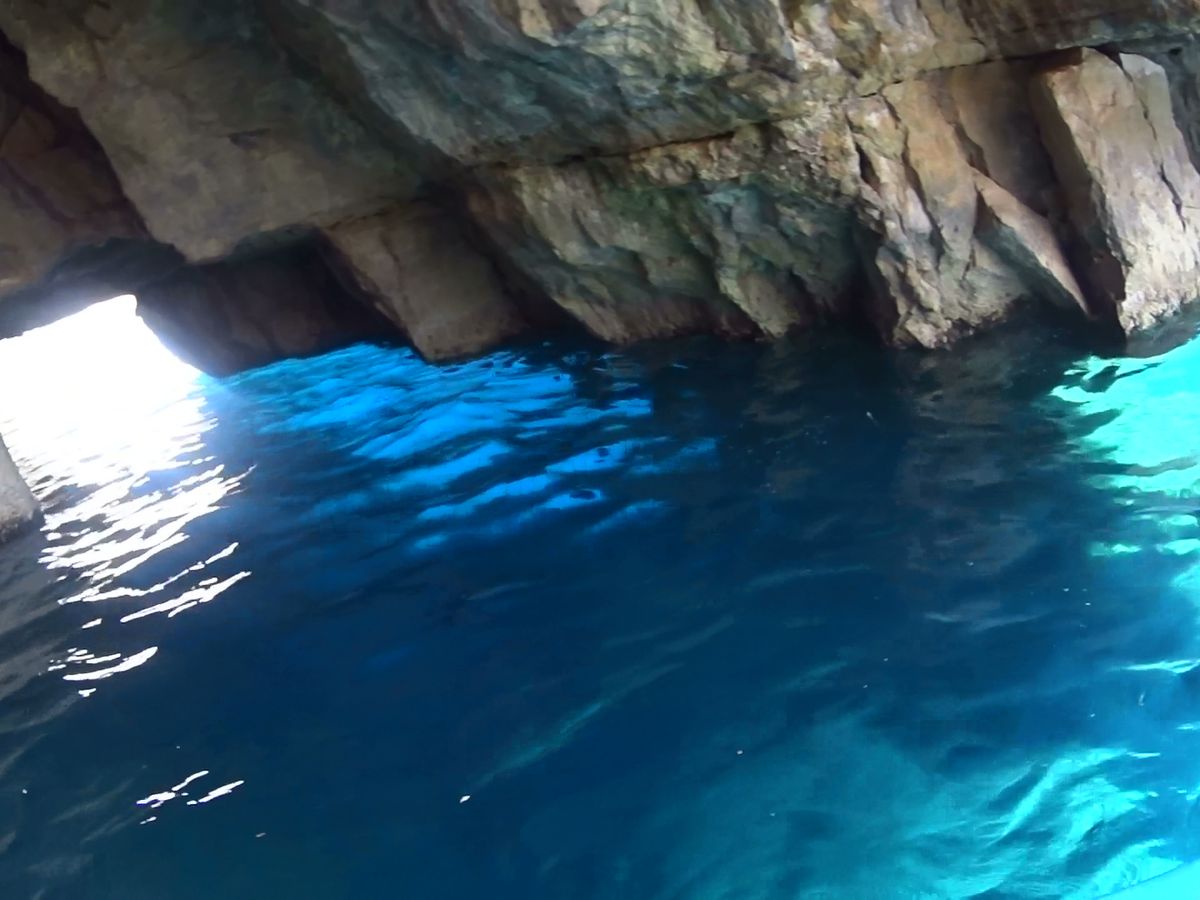 青の洞門へのボート乗場は長い列でしたが、すぐに順番が来ました。ゾウの形の岩や、深い岩場をいくつか回り、透き通る神秘的な海の色、海底の輝きに魅了されました。が、結構波が大きくて、軽い船酔いをしました。酔いやすい人は、事前に酔い止めを飲んだ方がいいかも。