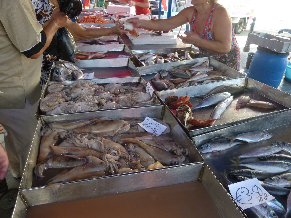 マルサシュロックは、思っていたほど漁村ぼくなく、リゾート地かマリーナのイメージでした。市場も魚介類は少なく、夜市の露店に近い感じ(午前中ですが)。スイカやメロンを安く売っていたし、ジェラートが美味しかった。係留している船はカラフルでした。