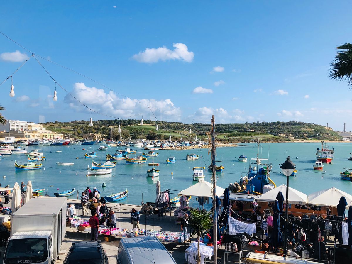 英語とドイツ語でツアーが行われました。マルタ在住のオランダ人のガイドさんがマルタの経済事情など様々なことをずっと説明してくれ、とてもおもしろかったです。また、同じようなバスがたくさん並んでいるので、バスの番号をRemindしてくれたりと気配りもありました。青の洞門では、「時間までにバスに戻らなかったら、ここにずっといるとみなし置いていていきます」ということでしたが、別のお客さんが「また戻っていない老夫婦がいる」とガイドさんに言うと、ちゃんと探しに行き待っていてくれました。マルサシュロックでは大雨に降られ、青の洞門に入れませんでしたが、代わりに付近の街を散策。とても楽しかったです。ちなみに、マルサシュロックは写真ほどカラフルではありません。また、青の洞門には別の日に行きましたが、コミノ島でのボートツアーと海の青さも内容もほぼ同じです。