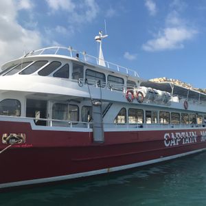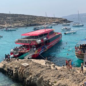 10月に利用。ホテルからスリーマ港まで歩きました。スリーマで船を探すのは少し大変でしたが無事に乗船できました。ビュッフェはあまり美味しくはありませんがまあ食べられます。ドリンクは水と白ワインが飲み放題でした。コミノ島まで2時間以上かけて行きます。とても揺れて気持ち悪くなっている人が数人いました。別途15ユーロでスピードボートでの洞窟ツアーにも参加しましたが、それほど面白くはなかったです。ラグーンでずっと泳いでいた方が良かったかも。晴れていて気温は25度くらい。海の色はとても綺麗でした。マリンシューズと半袖のスウィムウェアを着用して快適でした。ビキニで裸足の人たちは辛そうでした。